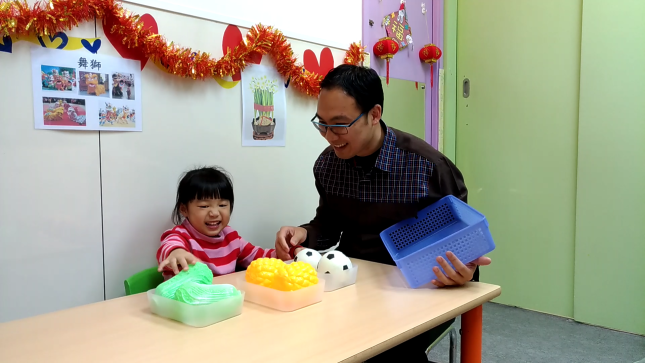 「當希言扔玩具匙羹時,他可能享受匙羹掉在地上的聲音或動感,甚至享受大人因此而大發雷霆的反應,導師會淡然地向孩子說句『唔啱』,然後捉住孩子的手拾回玩具,並示範其功能或象徵意義 — 拿起匙羹,擺向洋娃娃咀巴,假裝餵食洋娃娃,最重要是當孩子做對了,給予讚賞,再重覆多次,讓希言感受到新玩法的樂趣。」冼姑娘娓娓道來。